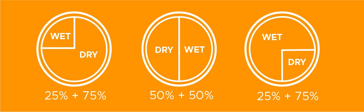 - If you want to feed 75% Superfood Kibble, 25% wet, use the feeding guidelines for each and calculate how much 75% would be for providing dry and 25% of the feeding guidelines for our wet food trays.